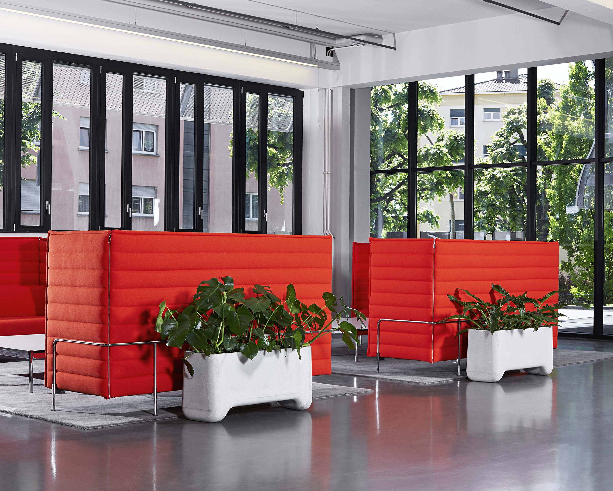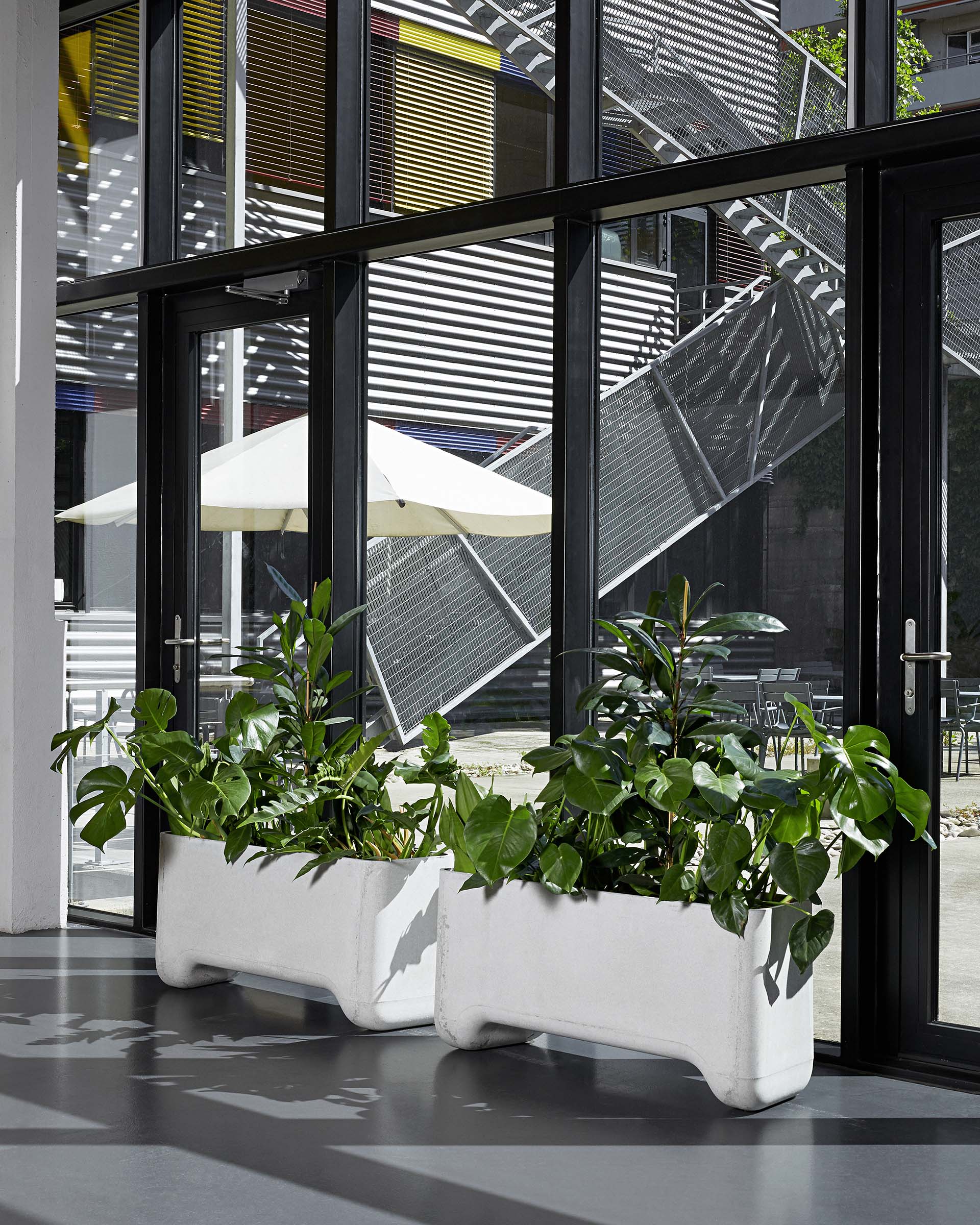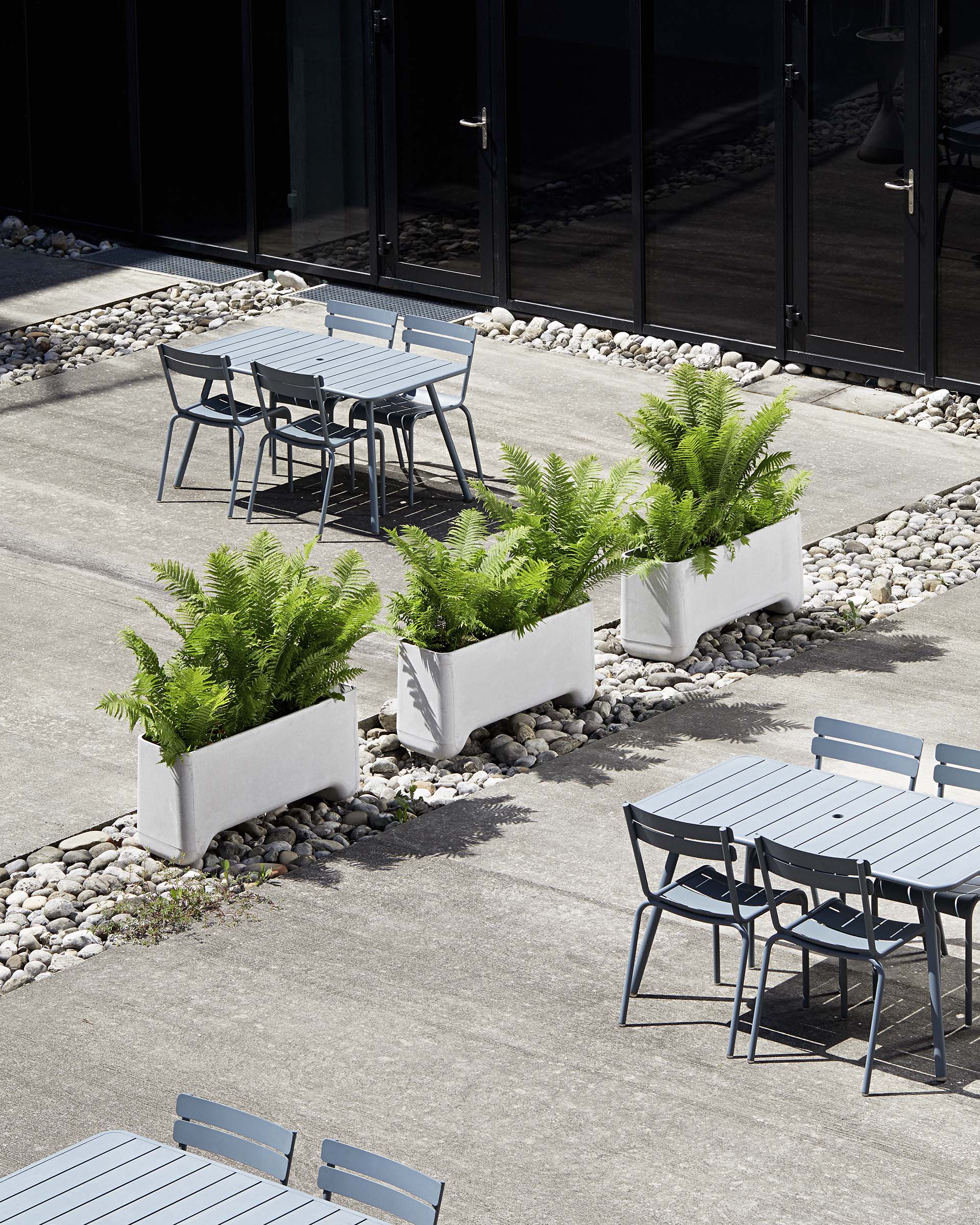 LIFT is a convenient plants pot compatible with most pallet jack and forklift, thus allowing it to be moved around and reorganised effortlessly. Its tapered sides make it possible to arrange them in a straight or curved line, or even to form a complete circle. Moulded from smooth and durable ETERNIT fibrocement sheets, LIFT is suitable for outdoor use, but it also enjoys living indoors.
