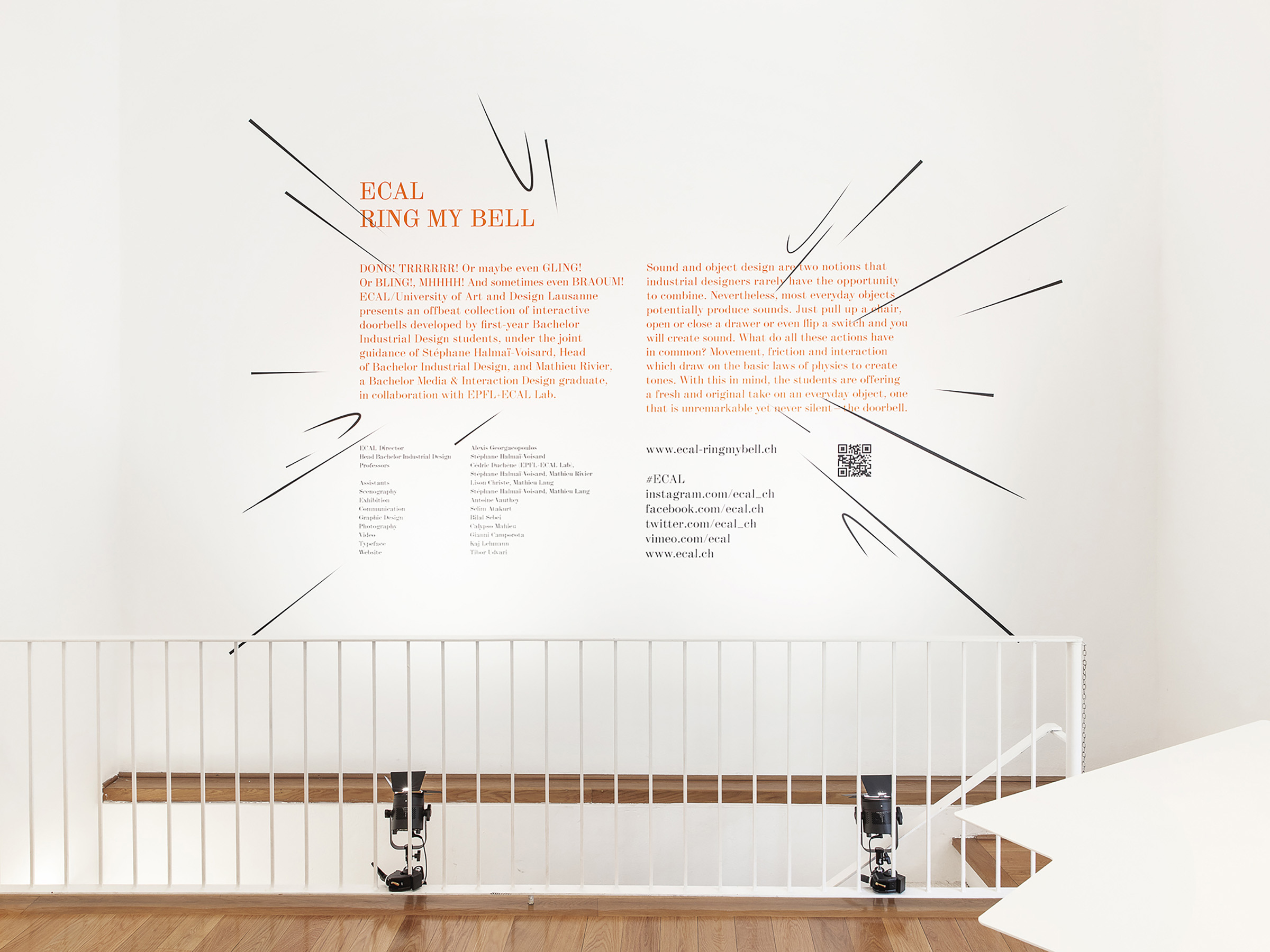 DONG! TRRRRRR! Or maybe even GLING! Or BLING!, MHHHH! And sometimes even BRAOUM! Ring My Bell is an offbeat collection of interactive doorbells developed by first-year Bachelor Industrial Design students, under the joint guidance of Stéphane Halmaï-Voisard, Head of Bachelor Industrial Design, and Mathieu Rivier.